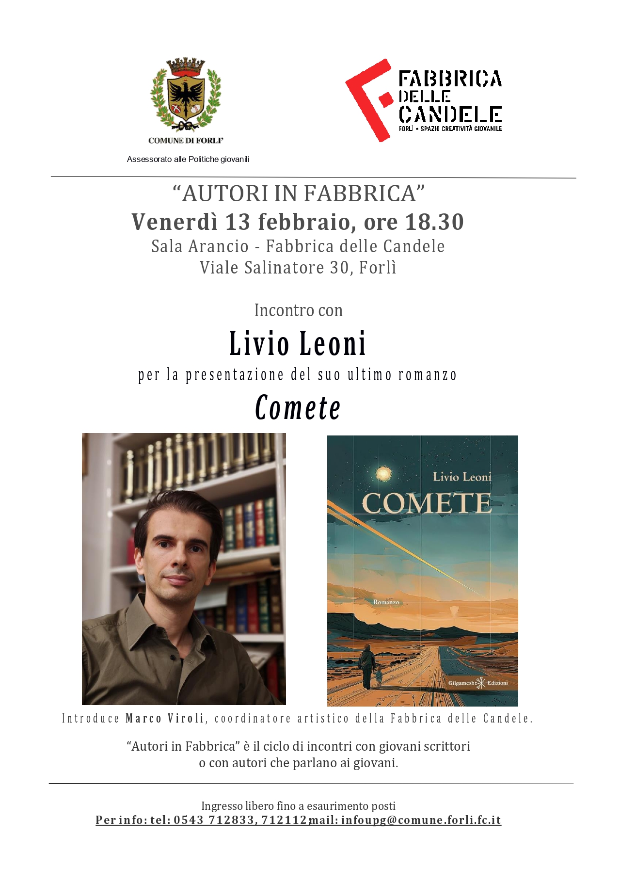 Assessorato alle Politiche Giovanili del Comune di Forlì presenta il romanzo “Comete” di Livio Leoni