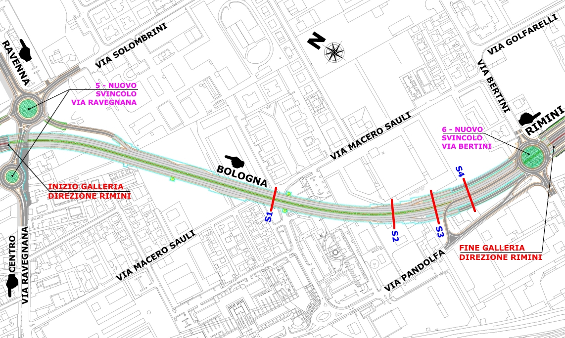 I lavori dell'A.A. 2° lotto, prevedono le seguenti opere d'arte: galleria, tombino scolo cerchia, sovrappasso via Edison, viadotti rampe 4 e 7 dello svincolo con la Tangenziale est...